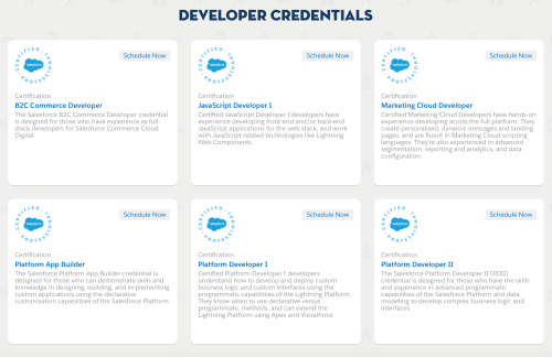Usually, if you have experience using Salesforce and some to no technical experience beforehand, you can become a developer by completing a developer certification (or several) through Trailhead. There are many currently available Salesforce Developer certifications, as shown below.
